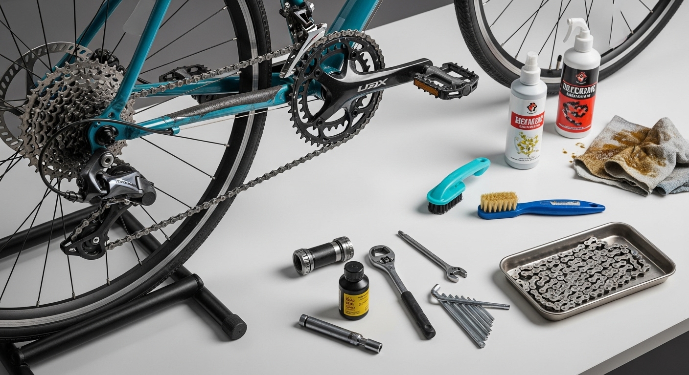 • Stojak serwisowy (opcjonalnie, ale bardzo pomocne): stabilizuje rower, co znacznie ułatwia pracę.